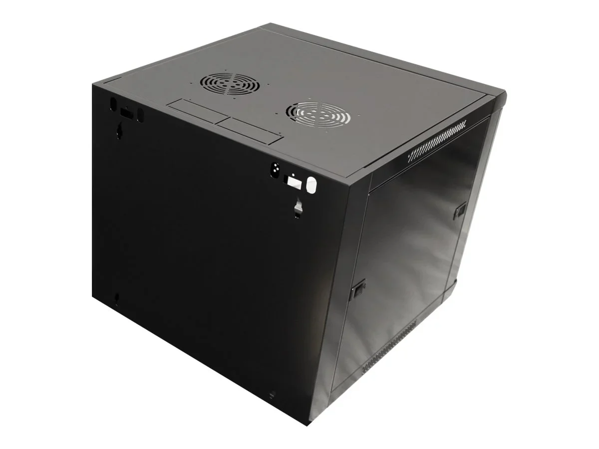 Stand-/Wandgehäuse zur Aufnahme aktiver oder passiver Netzwerkkomponenten VALUE Wandgehäuse, schwarz, mit Glastür Abnehmbare Tür mit Glaseinsatz und seitlichen Belüftungslöchern Abnehmbare Seitenwände ermöglichen optimale Zugänglichkeit ins Gehäuseinnere Boden-/Deckenblech mit Durchbrüchen für Kabeleinführung 19"-Ebene; in der Tiefe verstellbar Ein-Punkt-Schwenkhebel-Verriegelung, abschliessbar Max. Traglast (verteilt): 60kgFür kleine Netzwerkinstallationen sind Wandgehäuse oft die bessere LösungFür kleine Netzwerkinstallationen ist oft selbst ein halbhoher Netzwerkschrank schon zu groß, zumal dafür erst ein Stellplatz gefunden werden muss. In solchen Fällen sind Wandgehäuse die bessere Lösung. Sie bieten ausreichend Platz für einige Switches und Patchpanel und benötigen durch die Wandmontage keinen Platz auf dem Fußboden. Darüber hinaus kann der Netzwerk-Administrator bei entsprechender Aufhängung leicht den Status der Switches ablesen, ohne dafür in die Knie gehen zu müssen, oder ein Patchkabel umstecken, ohne auf dem Boden zu rutschen.Die VALUE Wandgehäuse beweisen, dass solch praktische Lösungen auch attraktiv sein können. Die schwarzen, leicht glänzenden Gehäuse sind durchaus bürotauglich. Ein großzügiger Glaseinsatz in der Tür erlaubt auch bei geschlossener Tür freien Blick auf alle eingebauten aktiven und passiven Komponenten. Sowohl Tür als auch die Seitenwände können abgenommen werden, was optimalen Zugang ins Gehäuse-Innere ermöglicht; die Kabelzuführung kann von oben oder unten erfolgen. Die Tür der VALUE Wandgehäuse kommt mit abschließbarem Schwenkhebel.