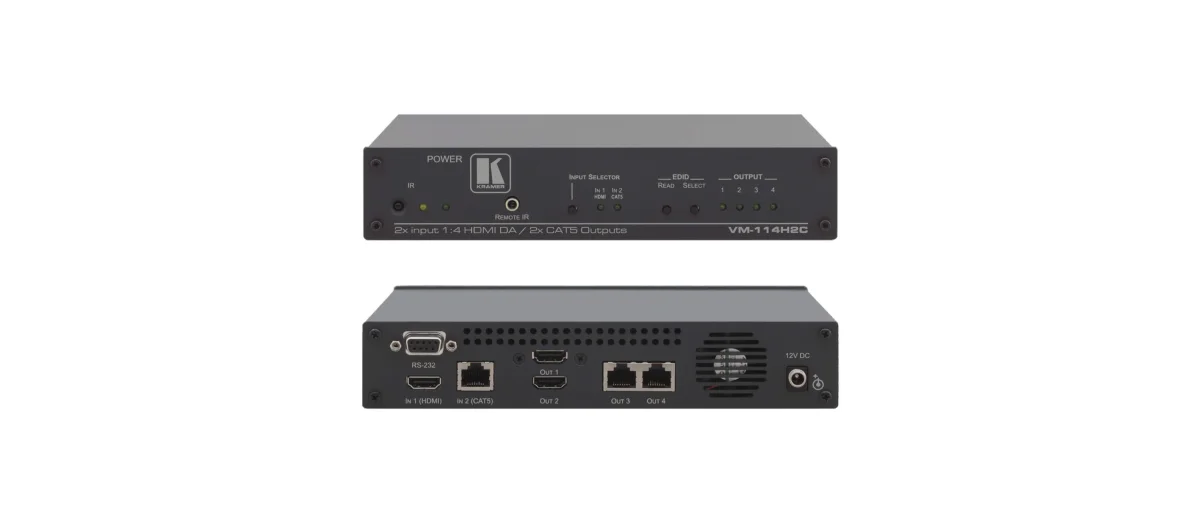VM-114H2C – 2x1:4 Umschalter mit Verteilverstärker für HDMI und DGKat™Twisted Pair mit RS-232 und IR