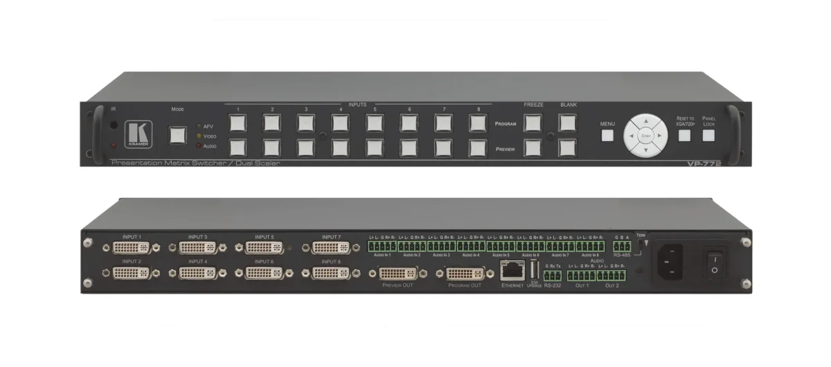 VP-772 – 4K 30 UHD Live-Event DVI-U Matrixschalter/Scaler mit Nahtlos-Umschaltung & Überblendeffekten