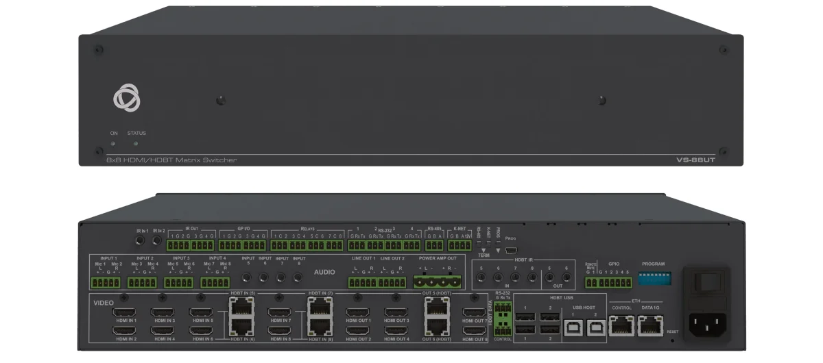VS-88UT – Universal-Präsentationssystem mit 8x8 4K60 4:2:0 HDMI/HDBT 2.0 Matrixschalter, Master-Raum-Controller, PoE & Endverstärker