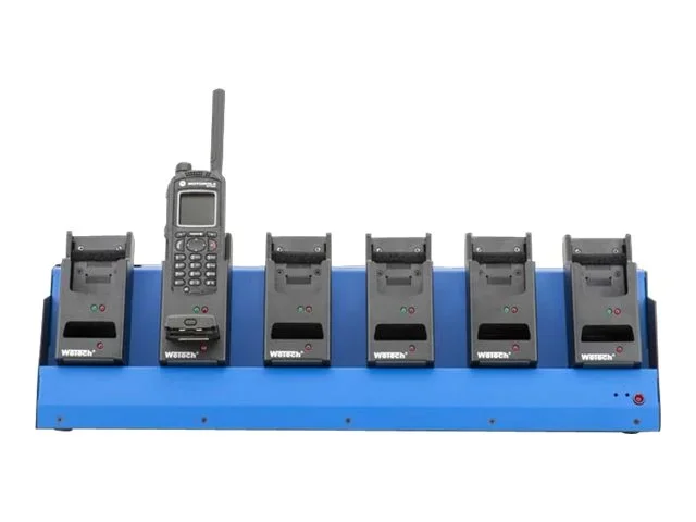 Die Programmierstation ermöglicht es Ihnen, mit Ihrer Programmiersoftware bis zu 6 Funkgeräte parallel zu programmieren. Sobald ein Funkgerät in einen Ladeschacht eingesetzt wird, wird es automatisch von der Software erkannt und kann programmiert werden.