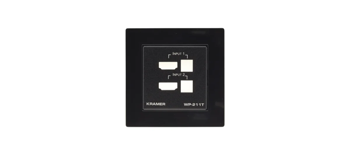 Das WP−211T EU PANEL SET besteht aus zwei schwarzen Rahmen und zwei schwarzen Blenden für die Kramer WP−211T 1 Wandplatte.