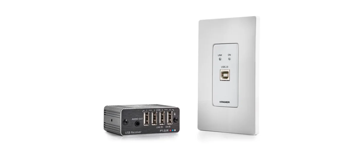 WP−2UT/R−KIT ist ein Extender−Kit für USB 2.0 und RS−232 mit Stromversorgung und erweiterter Reichweite über CAT−Kabel, das für viele Anwendungen eingesetzt werden kann. Das KIT besteht aus einem Übertrager zum Einbau in eine Unterputzdose und einem kompakten Empfänger. Der WP−2UT−Übertrager bindet einen USB−Host über CAT−Kabel an den PT 2UR−Empfänger an, mit dem die USB−Geräte verbunden sind.