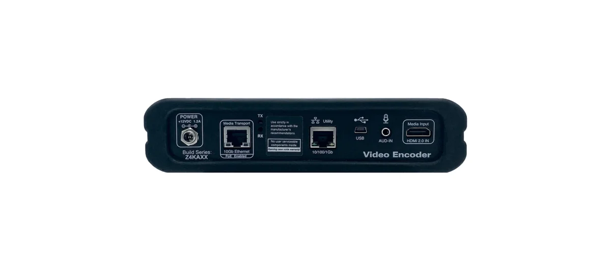 Z4KENCC3XS HDMI 2.0 input Encoder, with IP streaming via 10Gbit/copper. PoE. Supports HDMI and analog audio input. USB supported with between ZyPer4K XS/XR devices. Includes power supply. Compatible with any ZyPer4K Decoder. Cables not included.
