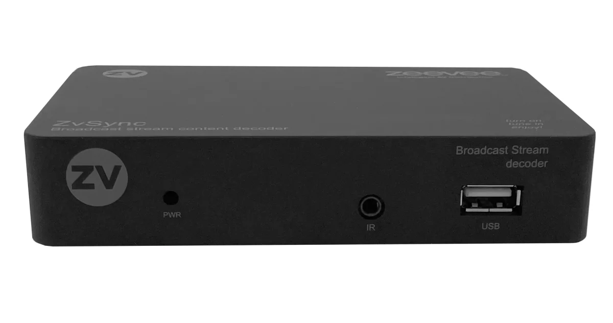 ZvSync QAM Tuner is a digital QAM/ATSC tuner/decoder providing video output via composite with analog audio or HDMI with embedded digital audio. Includes IR pigtail, IR remote control and power supply.