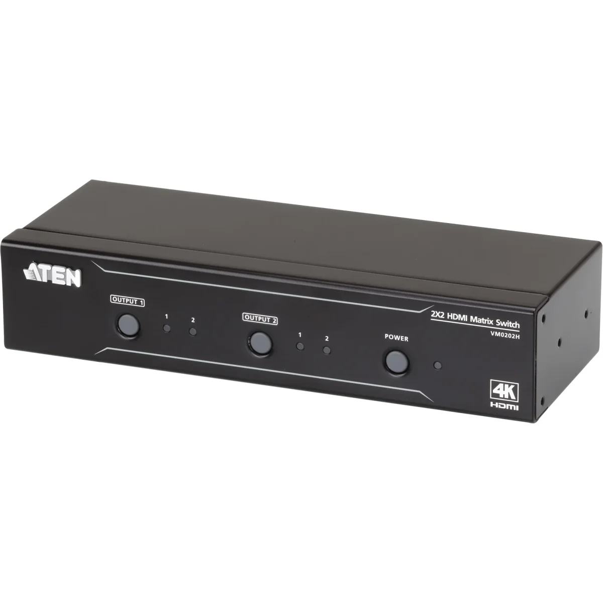 Der VM0202H ist ein 2 X 2 HDMI Matrix Switch, der die HDMI Spezifikationen erfüllt und Funktionen wie 3D, Deep Color bis zu 12 Bit und Datenraten bis zu 10,2 Gbps bietet. Für den zukünftigen Trend von hochauflösendem Video Switching entwickelt, unterstützt der VM0202H Computer-und Videosignale bei Auflösungen bis zu 4K. Der VM0202H Matrix Switch bietet ein leistungsstarkes Routing von 2 HDMI Videoquellen wie HD-Camcordern, Satellitenboxen, HD-DVD Playern, hochauflösenden Blu-ray Playern, Heimkino PCs und eigenständigen Streaming Media Playern für 2 HDMI Bildschirme. Die Fernbedienung und die bequemen Bedienfeldtasten ermöglichen es Ihnen, effizient durch HDMI Quellgeräte und Bildschirme zu schalten, während die LEDs an der Vorderseite das Quellgerät für jeden Bildschirm auf einen Blick anzeigen.