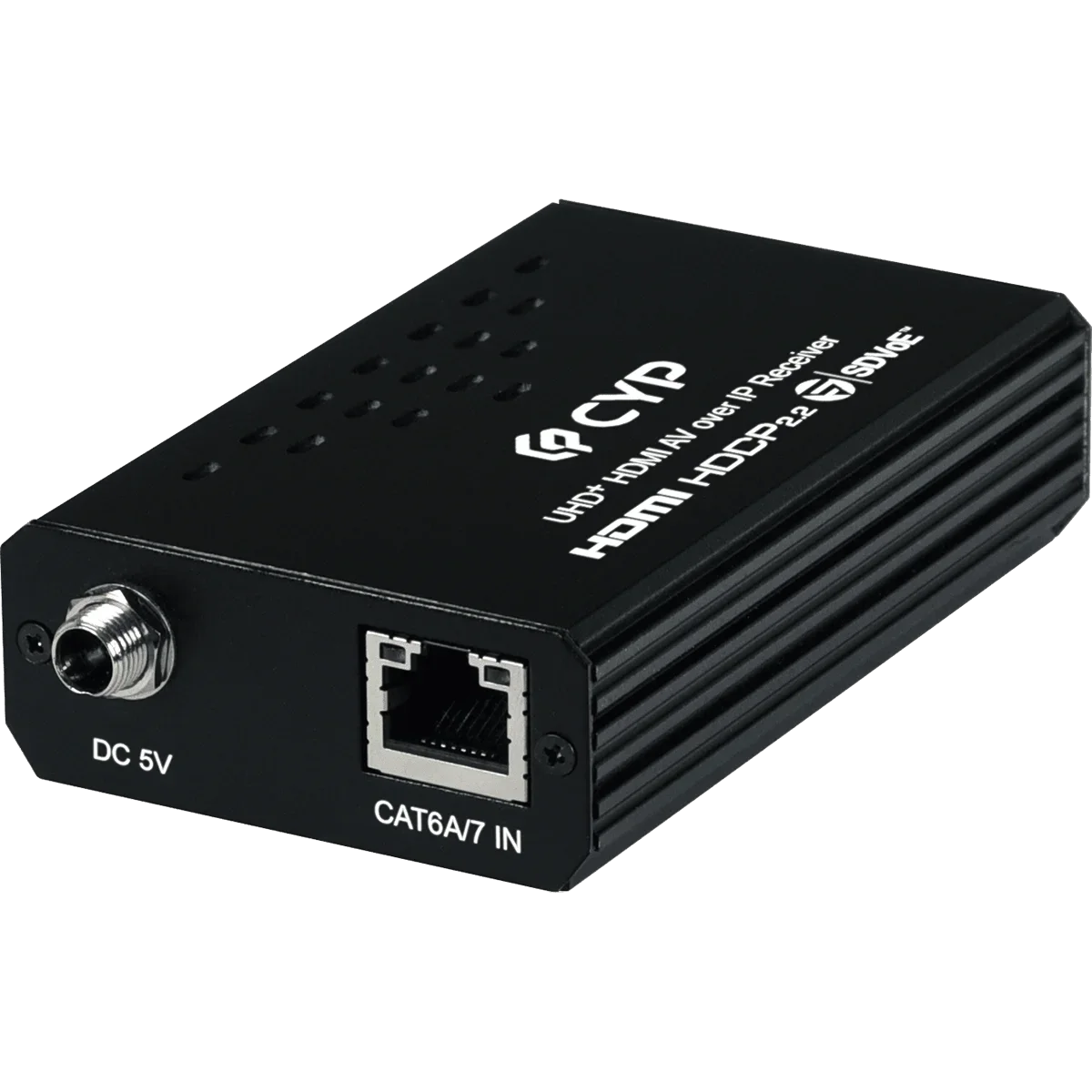 This receiver is designed for high-quality, IP routable, AV extension up to 4K@60 4:4:4 with minimum latency. The use of 10-Gigabit Ethernet ports and Cat.6A or better cable allows for point-to-point transmission of the video signal up to 100m. Advanced HDMI content such as HDR (High Dynamic Range), 10-bit color and multi-channel HD Bitstream audio can be transmitted in pass-through mode. The small and compact size design enhances the flexibility of installation.
