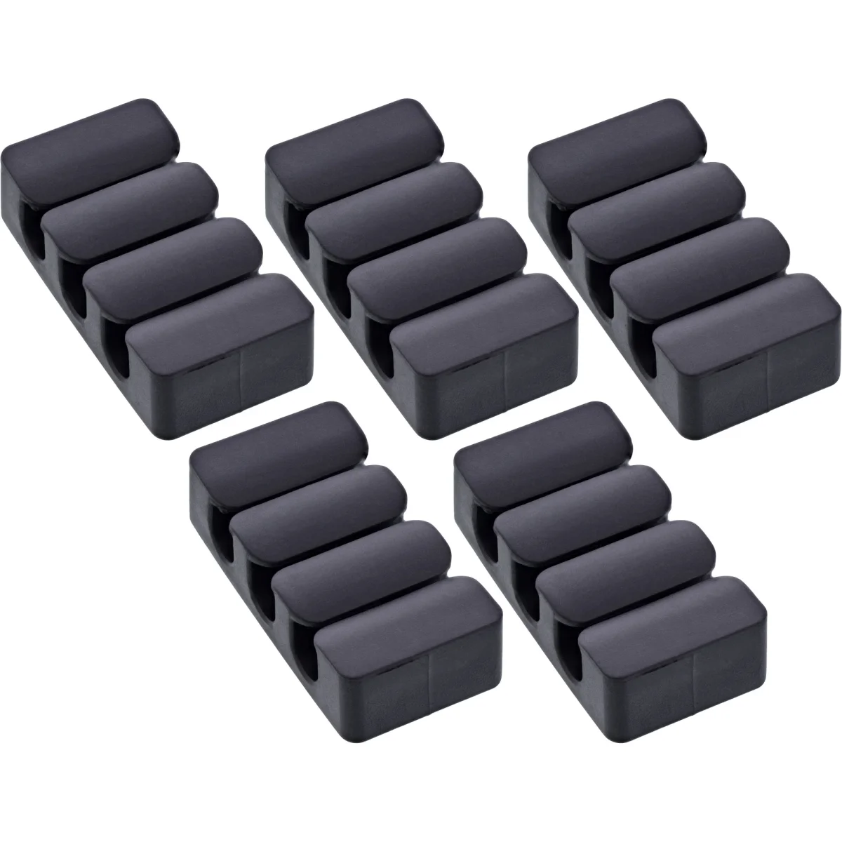 5er Pack InLine® Kabelclip, 3-fach, selbstklebend, schwarz