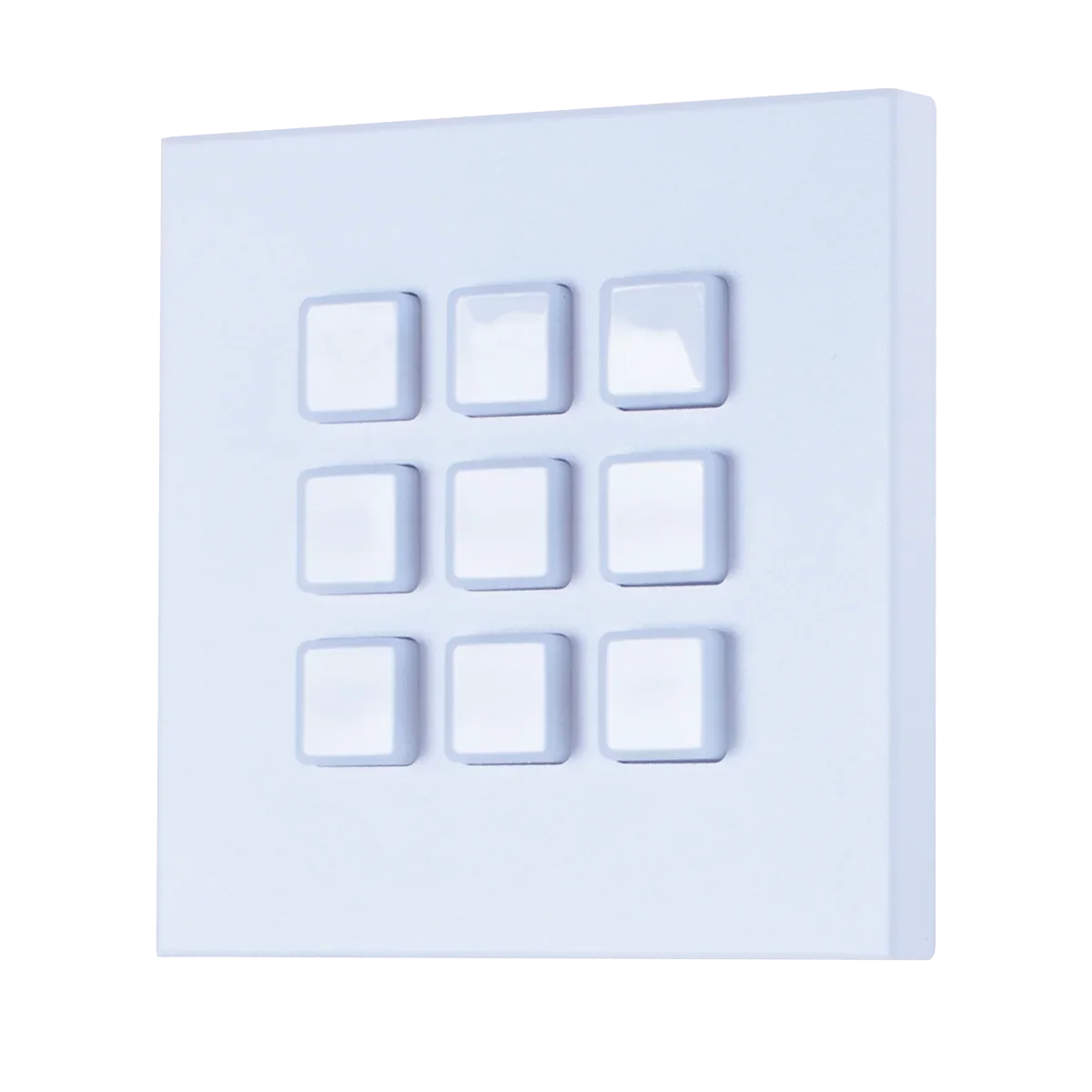 UK 2-gang or 1-gang wall plate design , Adjustable LED button brightness , 60 (36 on the 1-gang) macros for controlling user equipment , Up to 128 total commands can be stored and used across all macros in the system (up to 16 per macro), Supports switchable relays to control compatible devices , Supports time and date macro scheduling (single and recurring) , Supports condition checking within macro commands for expanded macro design flexibility , Supports one month of backup power for the internal clock and schedule function to protect against blackouts and temporary power loss , Supports customizable daylight savings time configuration , Can be powered by an Ethernet switch that supports the IEEE 802.3af PoE standard (Optional) , Controllable via keypad, Telnet and WebGUI