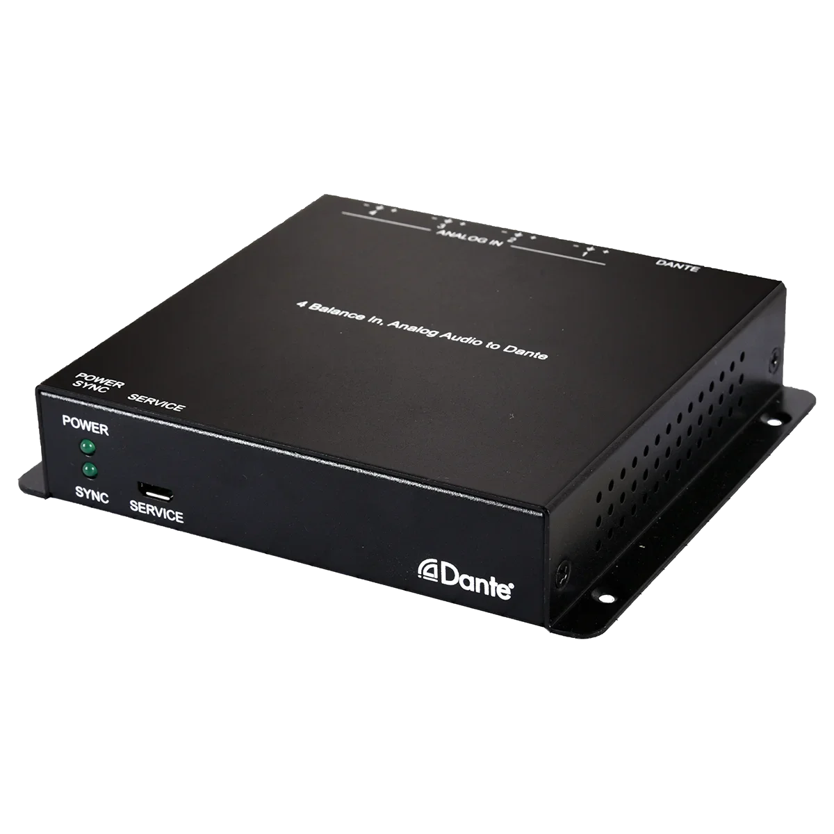 AIP-D4101- 4 Balanced In, Analog Audio to Dante; AIP-D1401- 4 Balanced Out, Dante to Analog Audio