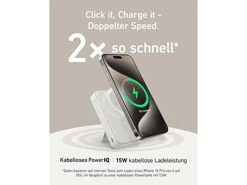 ANKER 633 MagGo magnetische PowerBank (10K) weiss 1.000mAh Qi2 15W ultra-fast MagSafe kompatibel Smart Display klappbarer Ständer