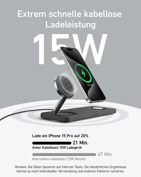 Anker MagGo - Induktive Ladematte - 3-in-1 + AC-Netzteil - 25 Watt - Apple Fast Charge, IQ - Schwarz
