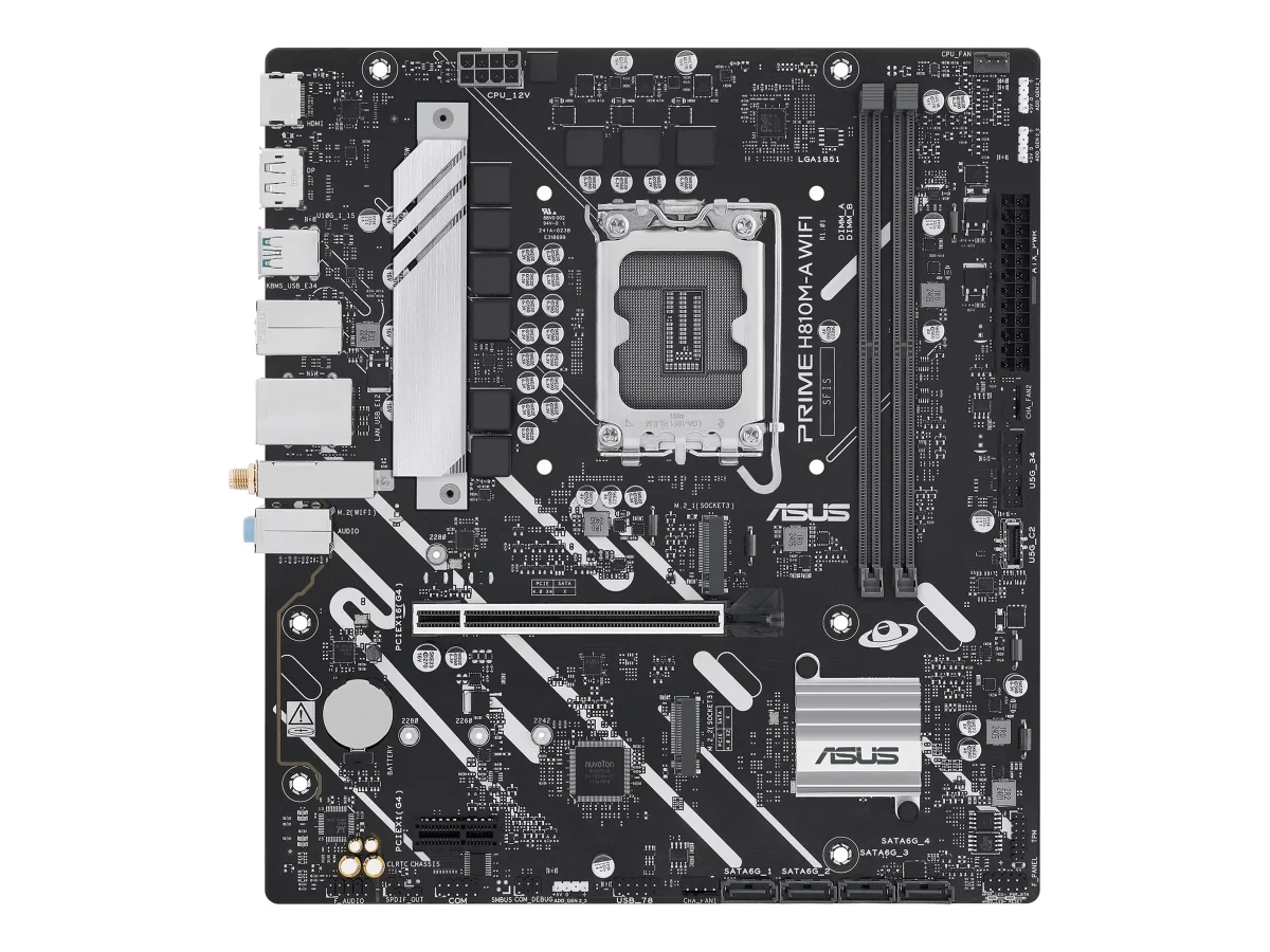 Das ASUS PRIME H810M-A WIFI-Motherboard wurde entwickelt, um robuste Leistung und Konnektivität für verschiedene Computeranforderungen zu bieten. Dieses Micro-ATX-Motherboard basiert auf dem Intel H810-Chipsatz und unterstützt Intel Core Ultra-Prozessoren und DDR5-RAM mit Geschwindigkeiten von bis zu 3200 MHz. Genießen Sie High-Definition-Audio über den 8-Kanal-Ausgang sowie eine Vielzahl von Erweiterungssteckplätzen für PCIe und M.2 für erweiterte Speichermöglichkeiten. Die fortschrittlichen BIOS-Funktionen, einschließlich ASUS EZ Flash und CrashFree BIOS 3, gewährleisten einen zuverlässigen Betrieb und einfache Updates.