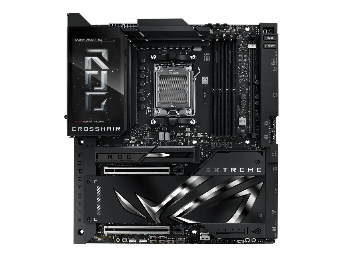 Das ASUS ROG CROSSHAIR X870E EXTREME-Motherboard wurde für Enthusiasten entwickelt, die leistungsstarke Systeme aufbauen möchten. Es unterstützt Prozessoren der Ryzen 7000/8000/9000-Serie und gewährleistet so die Kompatibilität mit leistungsstarken CPUs. Ausgestattet mit fortschrittlichen Audiofunktionen, darunter High Definition Audio und Dolby Atmos, bietet dieses Motherboard über den SupremeFX-Audio-Codec ein beeindruckendes Klangerlebnis. Mit mehreren Erweiterungssteckplätzen, darunter PCIe 5.0, mehrere M.2-Steckplätze und eine Vielzahl von USB-Schnittstellen, bietet es Flexibilität für den Anschluss zusätzlicher Komponenten und Peripheriegeräte. Das robuste Stromversorgungsdesign sorgt für Stabilität und Zuverlässigkeit und macht es für Gaming und Content-Erstellung geeignet. Das Motherboard verfügt außerdem über Technologien wie AI Overclocking und AMD Precision Boost Overdrive zur Leistungsoptimierung sowie ASUS Aura Sync für anpassbare Beleuchtungsoptionen, um die Ästhetik Ihres Systems zu verbessern.