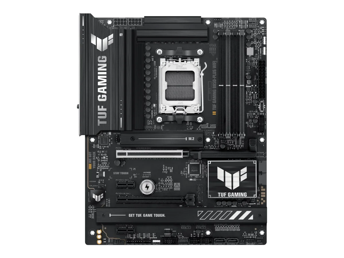 Das ASUS TUF GAMING B850-PLUS WIFI-Motherboard wurde für Gamer und PC-Enthusiasten entwickelt, die zuverlässige Leistung und fortschrittliche Funktionen suchen. Mit Unterstützung für Prozessoren der Ryzen 7000/8000/9000-Serie bietet es eine robuste Plattform für den Aufbau von Hochleistungssystemen. Das Motherboard verfügt über ein UEFI-BIOS mit ASUS EZ Flash 3, das einfache Updates und die Verwaltung von Systemeinstellungen ermöglicht. Dieses Motherboard unterstützt DDR5-SDRAM mit Geschwindigkeiten von bis zu 4000 MHz im übertakteten Zustand und ermöglicht so ein schnelles und reaktionsschnelles Benutzererlebnis. Seine zahlreichen Erweiterungssteckplätze, darunter PCIe 5.0 und M.2, bieten umfangreiche Aufrüstungsmöglichkeiten. Die integrierte 2,5-Gigabit-Ethernet- und Wi-Fi 7-Kompatibilität sorgt für eine reibungslose und schnelle Konnektivität und eignet sich somit für Online-Gaming oder Multimedia-Erlebnisse.