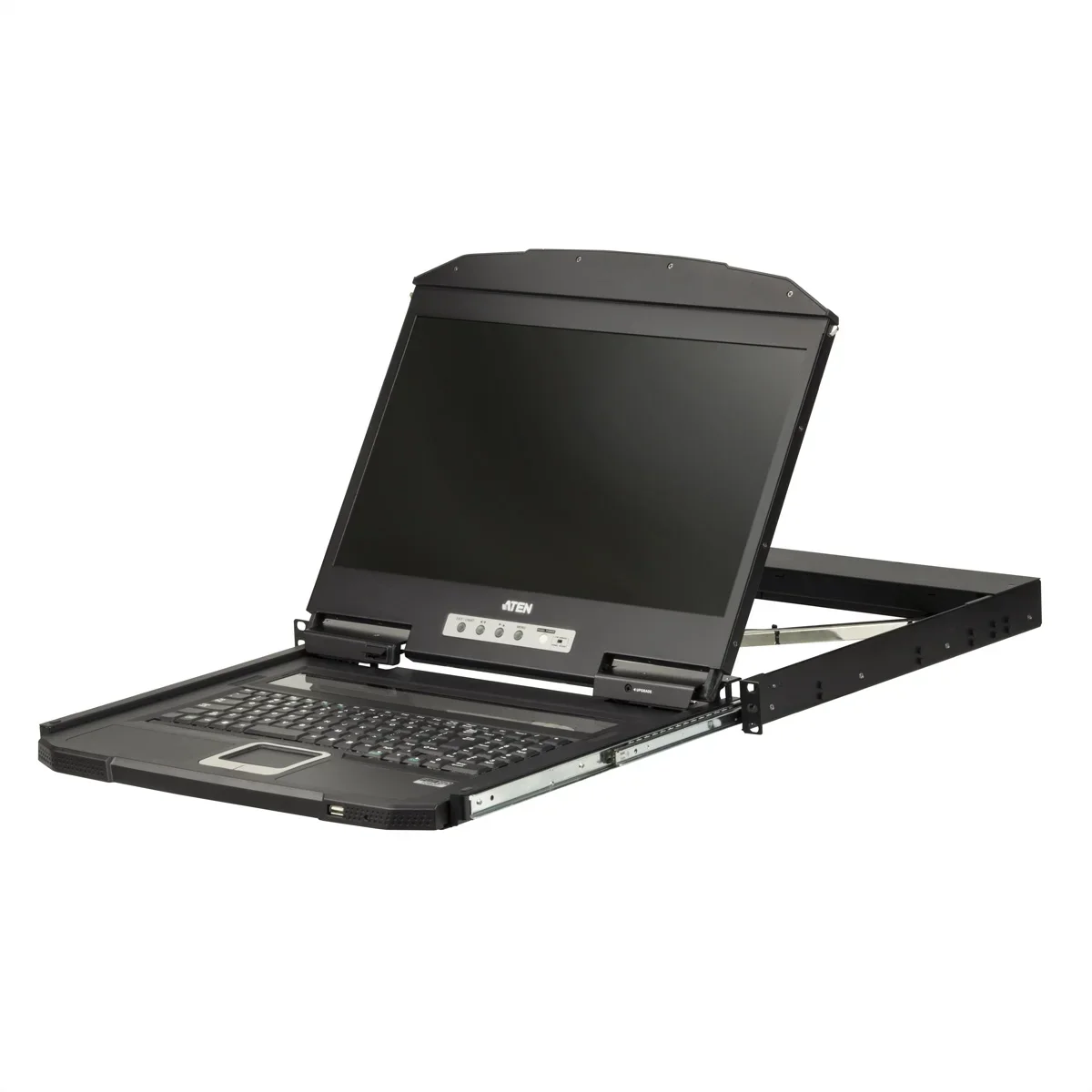 Die CL3100 USB VGA LCD Konsole ist eine Single Rail LCD KVM Konsole mit kurzer Tiefe und einem 18,5" Breitbild-LCD Monitor mit LED-Hintergrundbeleuchtung und integrierter Tastatur und Touchpad. Die kurze Bauweise passt in alle 19" Geräteschränke und eignet sich besonders für flache Racks. Die CL3100 bietet eine ideale platzsparende Lösung für spezielle Umgebungen, wie z.B. Übertragungswagen (Ü-Wagen) und kompakte Kontrollräume.Die CL3100 ist eine dedizierte Front-End-Schiebekonsole für kompatible VGA-KVM-Switches. Für zusätzlichen Komfort können Benutzer den Computer von einer externen Konsole aus verwalten. Die CL3100 bietet einen Anschluss für eine externe USB Maus an der Vorderseite des Gerätes. An der Rückseite befinden sich Anschlüsse für die zweite KVM Konsole (USB-Tastatur/Maus und VGA-Monitor). Die CL3100 bietet zwei Mini Stereo Anschlüsse für den Anschluss von Audiolautsprechern.