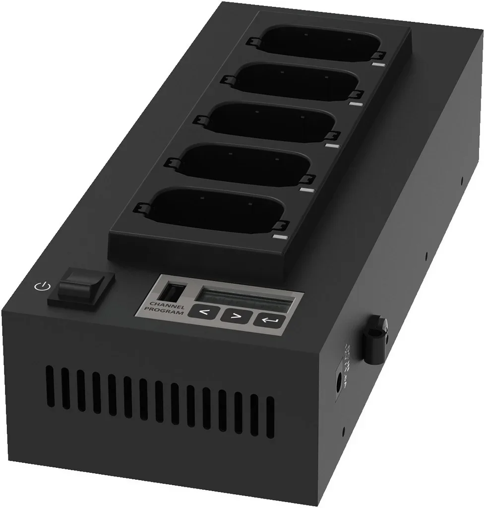 Ladestation zum gleichzeitigen Aufladen der Akkus und zum Programmieren von fünf Geräten der ATS-80-Serie