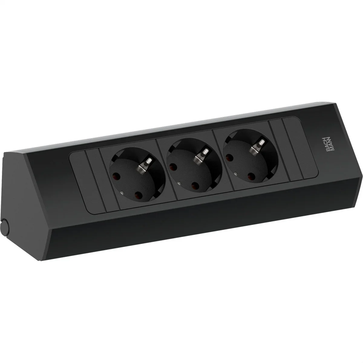 CASIA 2 Steckdosenleiste für Nischen- und Eckmontage, Aluprofil mit Blende in RAL9005 schwarz 3xSchutzkontaktsteckdosen mit erhöhtem Berührungsschutz, Zuleitung: 2,0m H05VV-F3G1,5mm² schwarz mit Aderendhülsen und beigelegtem Schutzkontakt-Montagestecker verpackt im Karton mit POS Sleeve