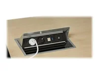 Bachmann CONEO Einbaurahmen 4-fach - 2x Schutzkontaktsteckdose, 1x USB doppel Charger, 1x Custom Modul - die einfache und schnell Lösung um Strom- und Datenanschlüsse elegant im Möbel zu integrieren. Mit der Coneo Serie garantiert Bachmann große Flexibilität durch den Einsatz von Custom Modulen und die absolute Beinfreiheut durch die minimale Einbautiefe, auch bei randnahem Einbau. Die schnelle und einfache Installation kann dank eines doppelseitigen Spezial-Klebeband problemlos durchgeführt werden. Die Leitungen können auch im geschlossenen zustand einwandfrei genutzt werden.