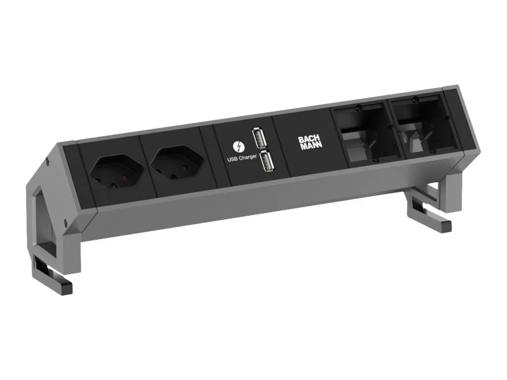 Bachmann DESK 2 - Steckdosenleiste - Eingabe, Eingang GST18 - Ausgangsanschlüsse: 2 (T13) - 20 cm Schnur - Schweiz - Schwarz, rostfreier Edelstahl