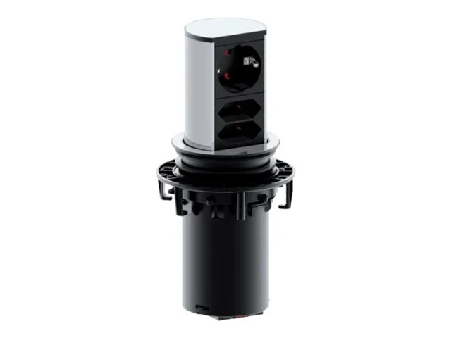 Per Daumendruck fährt ELEVATOR aus und wird so auch wieder versenkt. ELEVATOR gibt es in zwei Ausführungen: mit drei Steckdosen oder mit einer Steckdose und zwei Datenschlüssen.