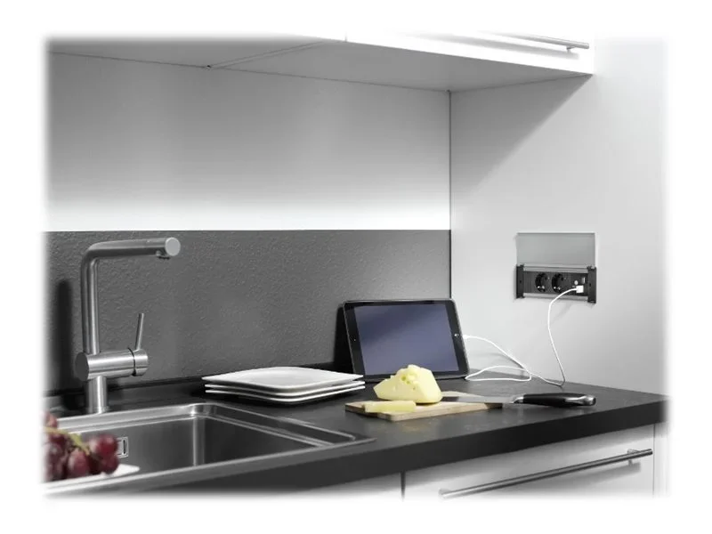 Bachmann KAPSA - Steckdosenleiste - Ausgangsanschlüsse: 2 - 2 m Schnur - Deutschland - Schwarz, eloxiertes Aluminium