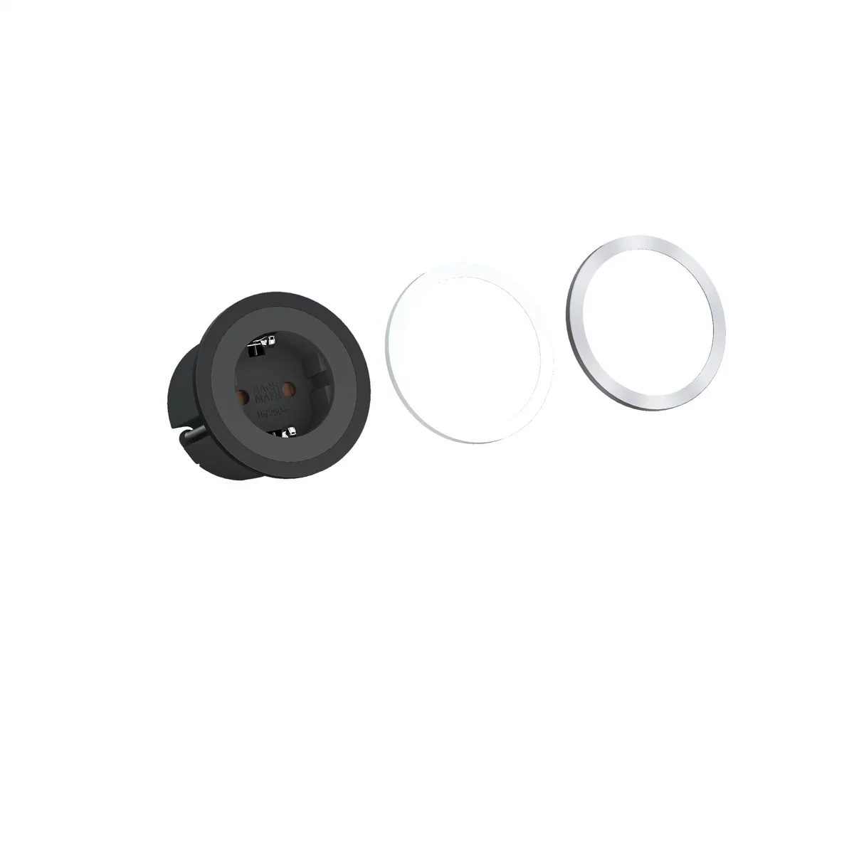 BACHMANN PIX 1xCEE7/3 Montagest. 3Zierringe, ws, sw, Edelst.,2m Kabel