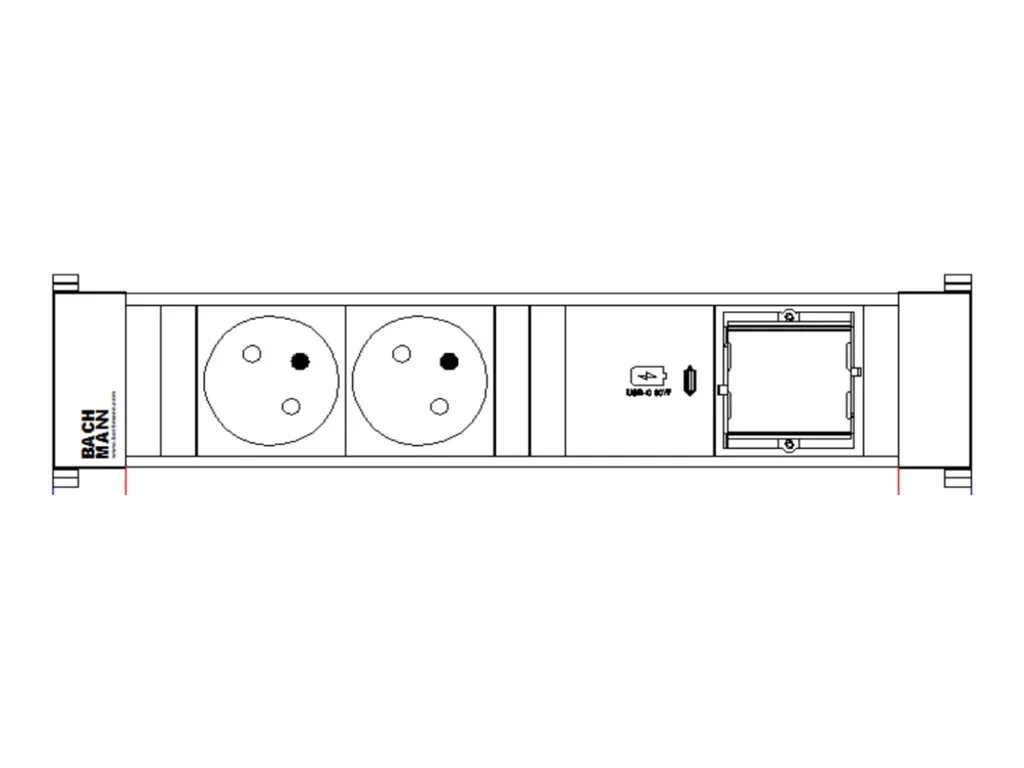 Bachmann POWER FRAME - Steckdosenleiste (Unterputz-Montage) - medium - Wechselstrom 250 V - 3680 Watt - Eingabe, Eingang GST18i3 - Ausgangsanschlüsse: 2 (2 x CEE 7/5, 24 pin USB-C) - 20 cm Schnur - Silber