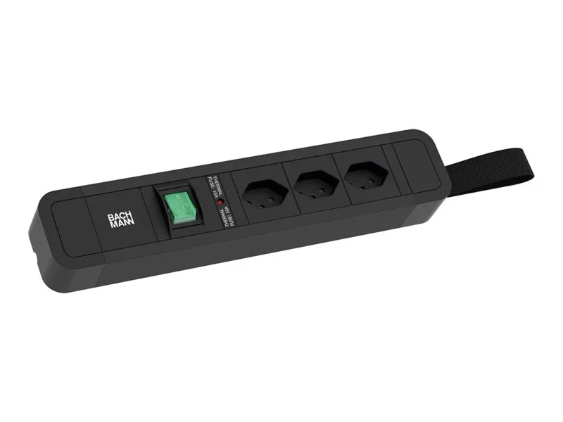 Bachmann PRIMO 2 - Steckdosenleiste - with strap - Eingabe, Eingang T13 - Ausgangsanschlüsse: 3 (T13) - 2 m Schnur - Schweiz - Anodized Black