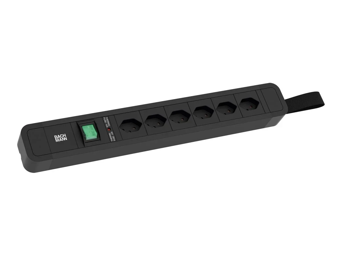 Bachmann PRIMO 2 - Steckdosenleiste - Eingabe, Eingang Typ J - Ausgangsanschlüsse: 6 (T13) - 2 m Schnur - Schwarz