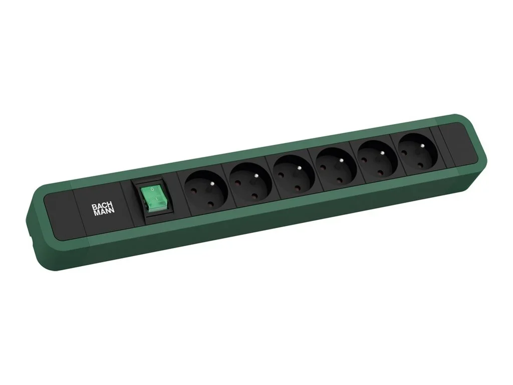 Bachmann PRIMO 2 - Steckdosenleiste - with strap, right-angled plug, with earthing contact (Strom UTE) - 2 m Schnur - grün