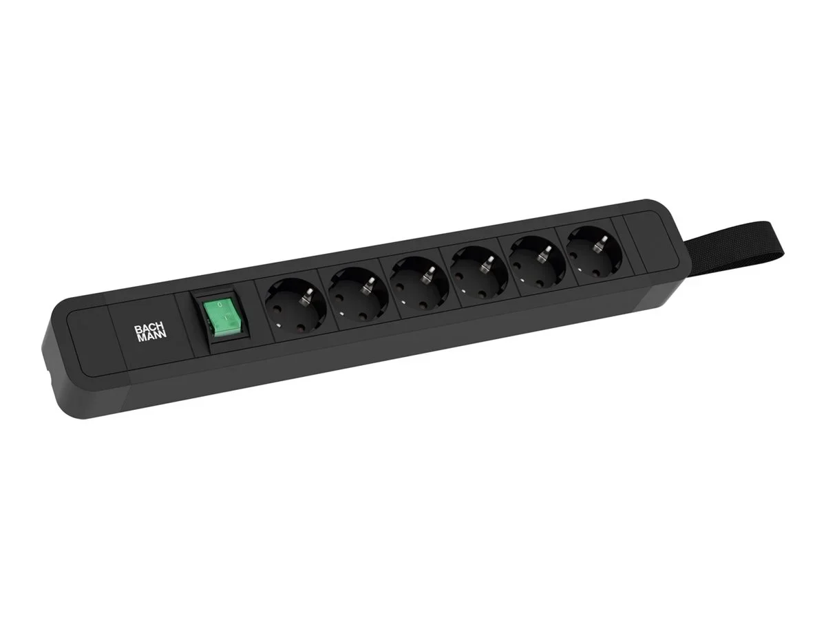 Bachmann PRIMO 2 - Steckdosenleiste - mit Tragegurt - Wechselstrom 250 V - 1-phasig - Eingabe, Eingang power CEE 7/7 - Ausgangsanschlüsse: 6 (6 x Leistungs-CEE 7/3) - 2 m Schnur - Anodized Black, RAL 9005