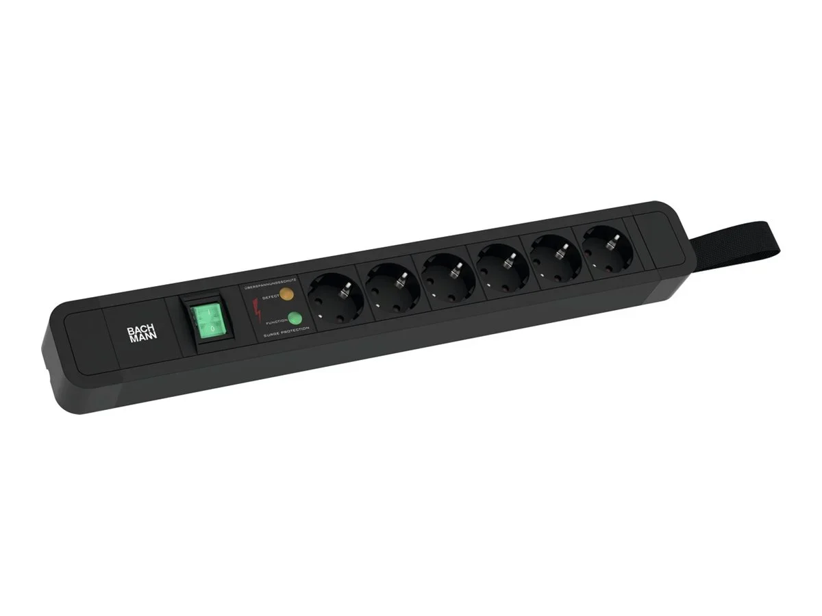 Bachmann PRIMO 2 - Steckdosenleiste - mit Tragegurt - Wechselstrom 250 V - 1-phasig - Eingabe, Eingang power CEE 7/7 - Ausgangsanschlüsse: 6 (6 x Leistungs-CEE 7/3) - 2 m Schnur - Anodized Black, RAL 9005