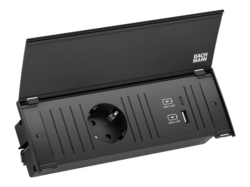 Bachmann KAPSA - Steckdosenleiste - Eingabe, Eingang Typ F - Ausgangsanschlüsse: 3 (Typ F, 24 pin USB-C, USB) - 2 m Schnur - Schwarz