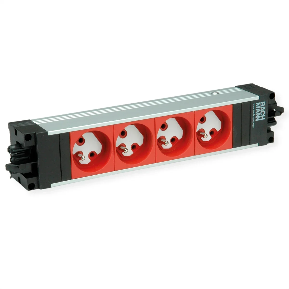 STEP ALU Steckdosenleiste 3xUTE EDV Steckdosen Frankreich rot mit erhöhten Berührungsschutz inkl. zusätzlichen Sicherungsschutz rot, Stromeingang und -ausgang GST18 mit BACHMANN Logo verpackt im Karton