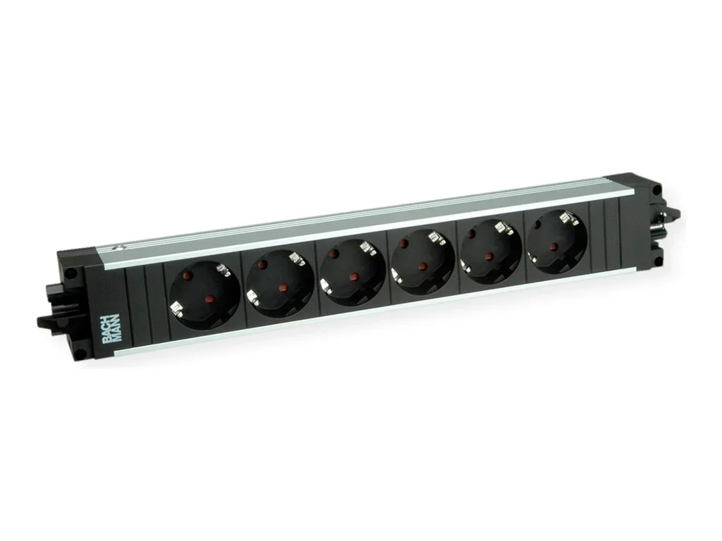 Bachmann STEP ALU - Steckdosenleiste - Wechselstrom 250 V - Eingabe, Eingang GST18i3 - Ausgangsanschlüsse: 6 (6 x Leistungs-CEE 7/3) - Schwarz, RAL 9005