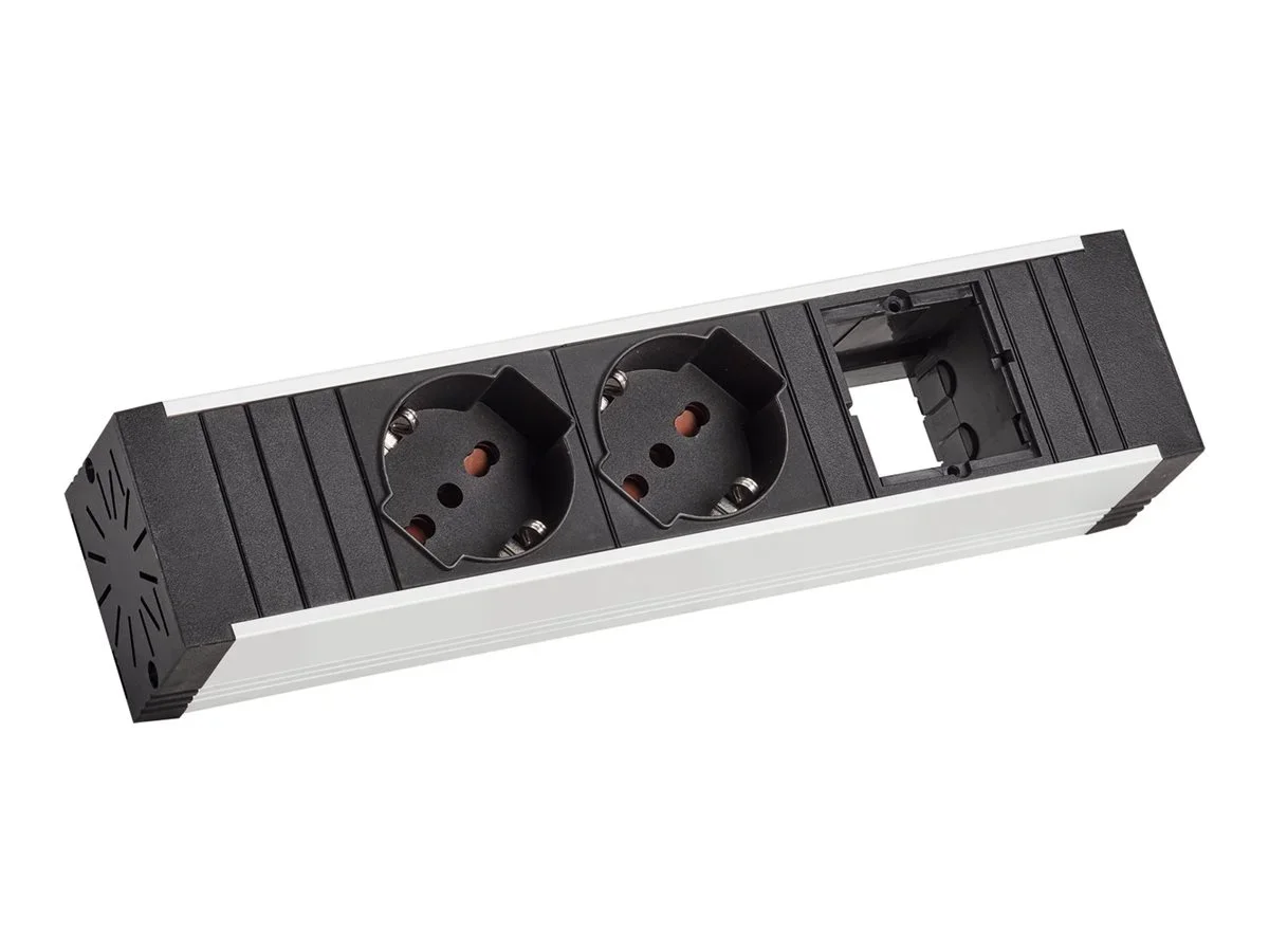 Die Bachmann VENID-Steckdosenleiste verfügt über ein robustes Gehäuse aus eloxiertem Aluminium, das die inneren Komponenten schützt. Mit ihrer kompakten Bauweise und einer Länge von 20 cm passt diese externe Steckdosenleiste in verschiedene Aufstellungen und ist somit eine vielseitige Ergänzung für zu Hause oder im Büro. Sie ist mit einem GST18-Eingangsanschluss und zwei CEI 23-50 P 40-Ausgangsanschlüssen ausgestattet und gewährleistet eine effiziente Stromverteilung für mehrere Geräte bei gleichzeitig ordentlicher und übersichtlicher Optik.