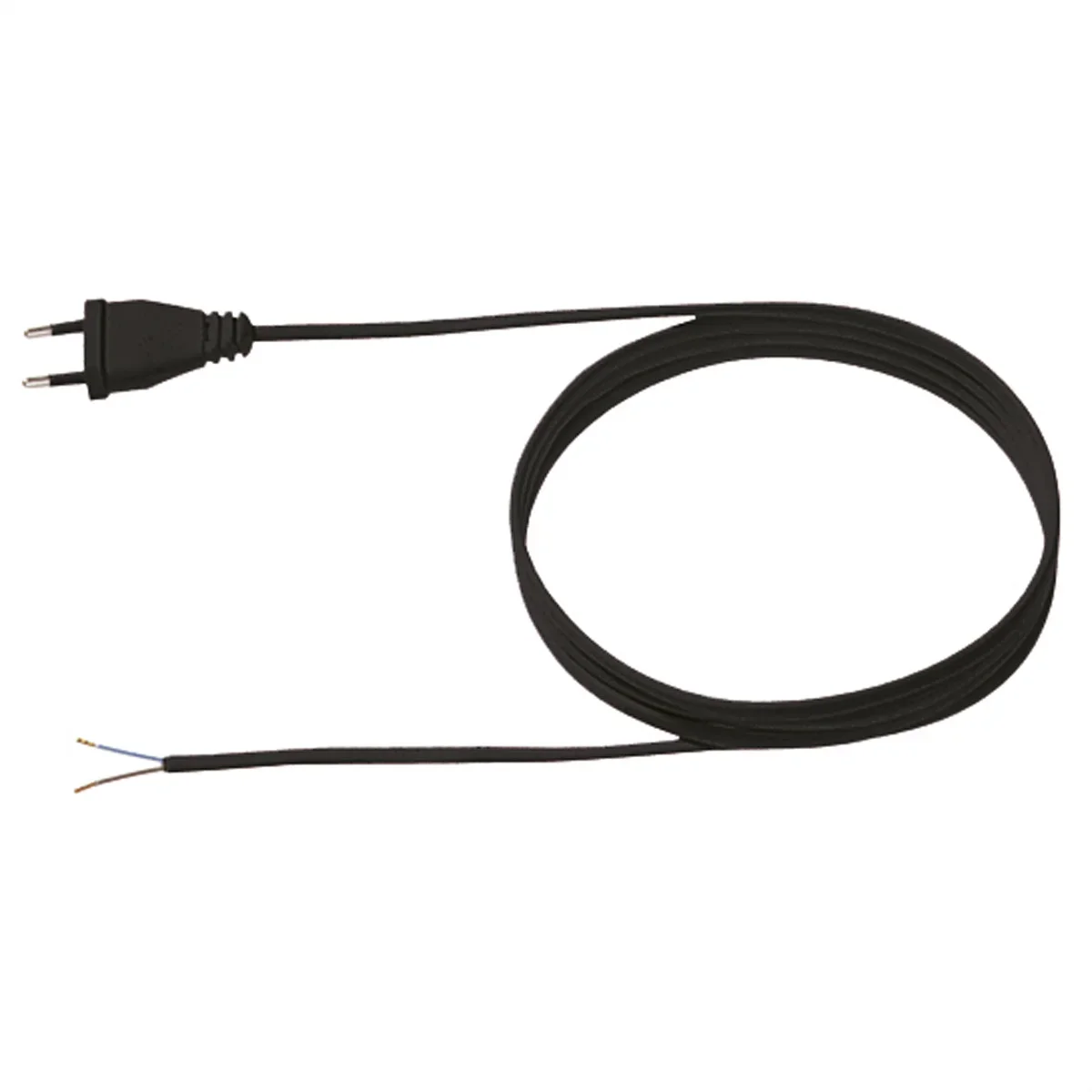 Stromverteiler ZULEITUNGEN/ ANSCHLUSSLEITUNGEN Stromleitung 2,5A/ 250V~ 2 m H03VVH2-F 2 0,75 mm² schwarz CEE 7/16 Euroflachstecker zentral gespritzt 25mm abgemantelt mit Aderendhülsen unverpackt