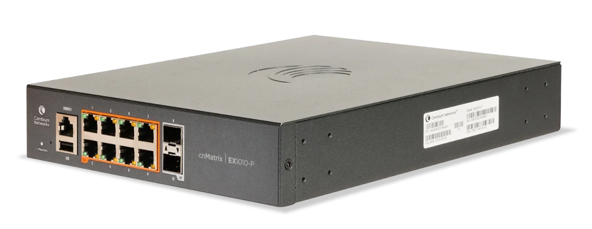 Cambium Switch full managed Layer2 10 Port • 8x 1 GbE • PoE Budget 75 Watt • 8x PoE at • 2x SFP • 10” • Lüfterlos, cnMaestro • EX1010-P