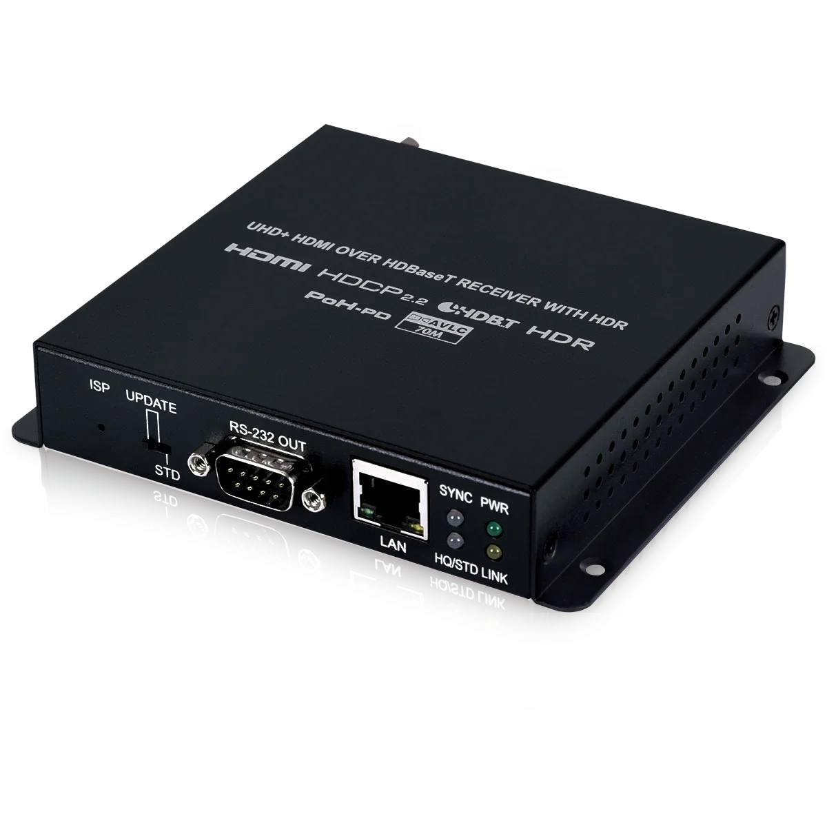 Multiple data and control interfaces are also provided, including IR, RS-232 and LAN connections. The Receiver (PD) is powered by 48V PoH (Power over HDBaseT) provided by the Transmitter (PSE), allowing for greater flexibility within different installation scenarios.