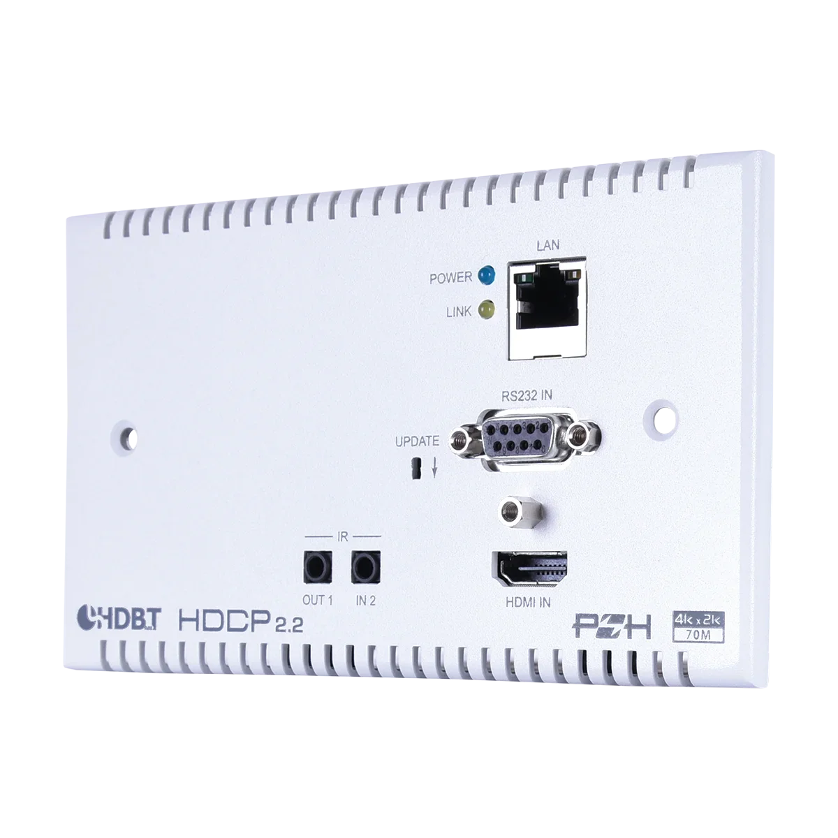 This HDMI over single Cat5e/6/7 Transmitter and Receiver set can send uncompressed, high resolution, video/audio over a single cable up to a distance of 100 meters. In addition to the audio and video capabilities, it can also bidirectionally transmit RS-232 and IR control signals as well as extending your local LAN to the display device UK 2 gang design allowing install on AC outlet.