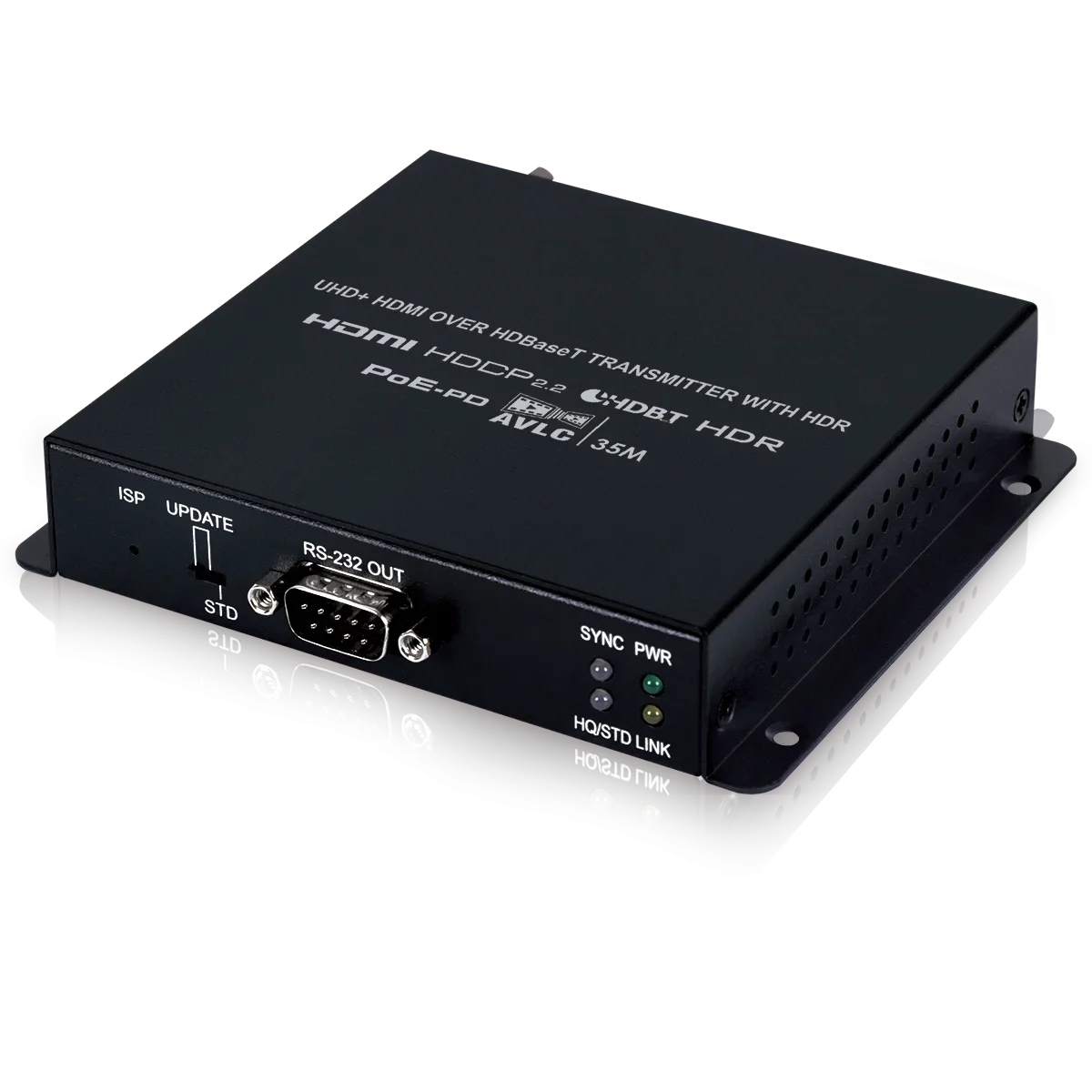 This Receiver is a great solution for extending UHD video and audio as well as control via a single run of Cat.5e/6/7 cable over distances up to 35 meters. This Receiver complies with the advanced HDCP 2.2 and HDMI 2.0 standards, as well as supporting the legacy HDCP 1.x and HDMI 1.x standards. Despite HDBaseT’s 10.2Gbps bandwidth limitation, 4K UHD HDMI video sources, up to and including 4K@60Hz (4:4:4, 8-bit) as well as 10/12-bit sources with HDR, are able to be processed and extended by the use of AVLC (Adaptive Visually Lossless Compression) when needed. Multiple data and control interfaces are also provided, including IR and RS-232 connections. This Receiver (PSE) can provide 48V PoH (Power over HDBaseT) to a compatible Transmitter (PD), allowing for greater flexibility within different installation scenarios.