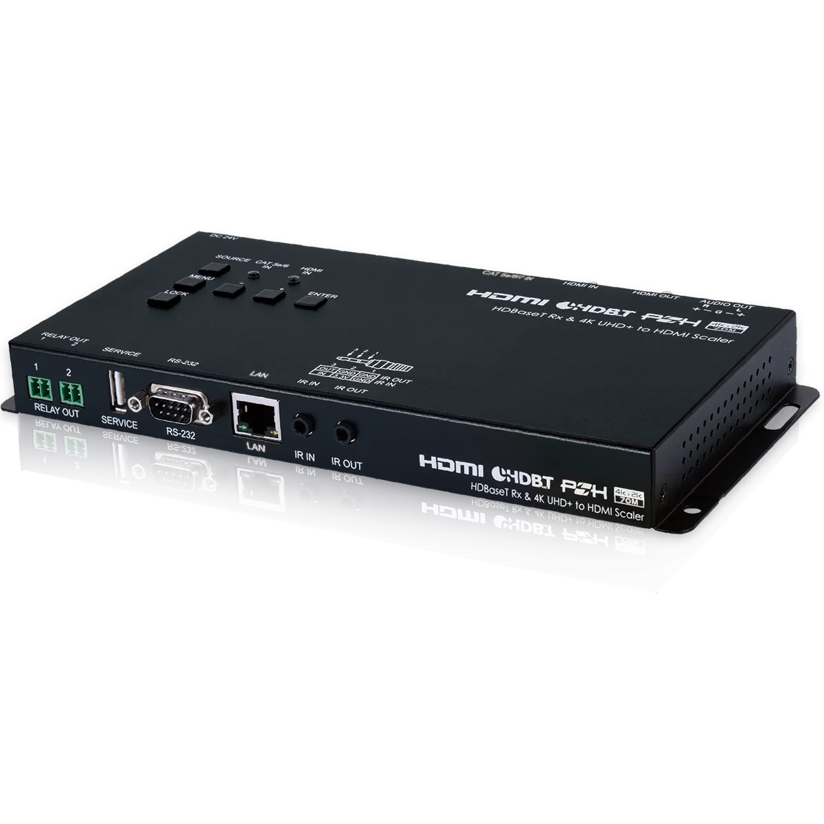 Receiver also supports 2 relay connections, providing instant control over projector screens, curtains, lights, etc. The unique macro programmability allows for the implementation of multiple command activations from a single button press. The units is controllable via top panel controls (with OSD), WebGUI, Telnet, and RS-232.