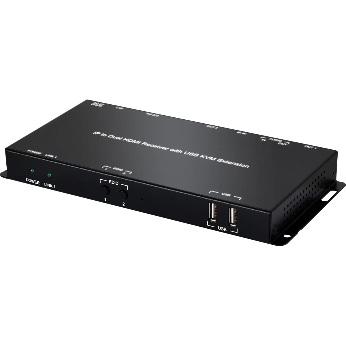The Dual over IP solution is designed to control and switch between KVM, PCs/ laptops and monitors to any connected devices to controlled dual monitor cross-transmit with single pair of KVM.
