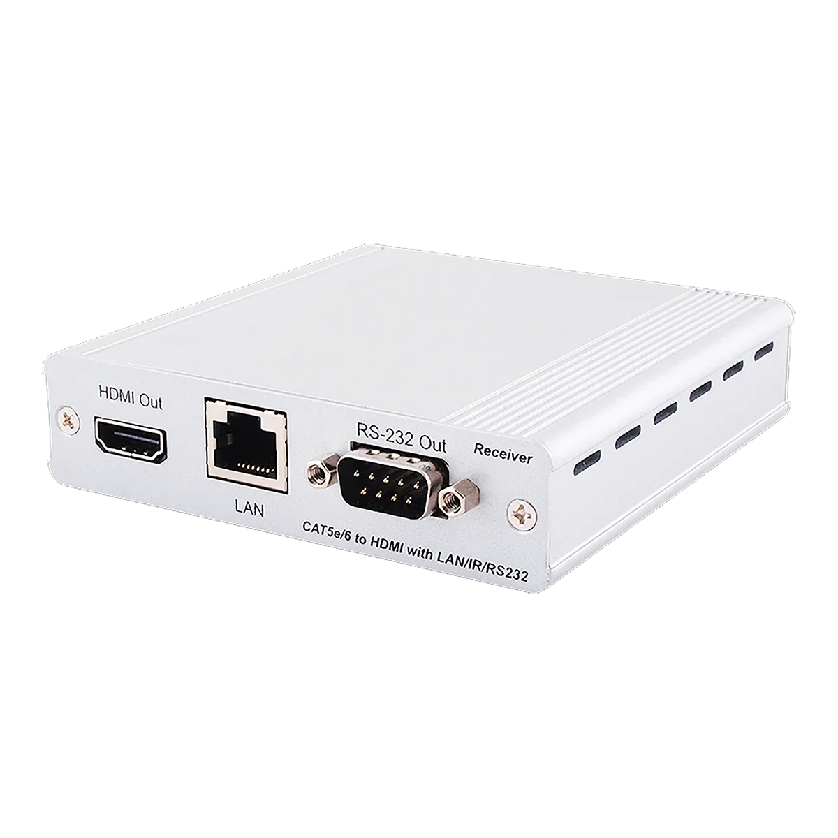 The HDMI over CAT5e/6/7 Transmitter and Receiver set can send uncompressed video/audio and IP data over an single run of CAT5e/6/7 cable up to 100m/328ft at 1080p and 70m/229ft at 4K. It has the added benefi t of control through the built-in RS-232 pass-through and 2-way IR control and a LAN serving connection. Additionally, it has bi-directional Power over Cable (PoC) functionality that allows for greater fl exibility in installations.