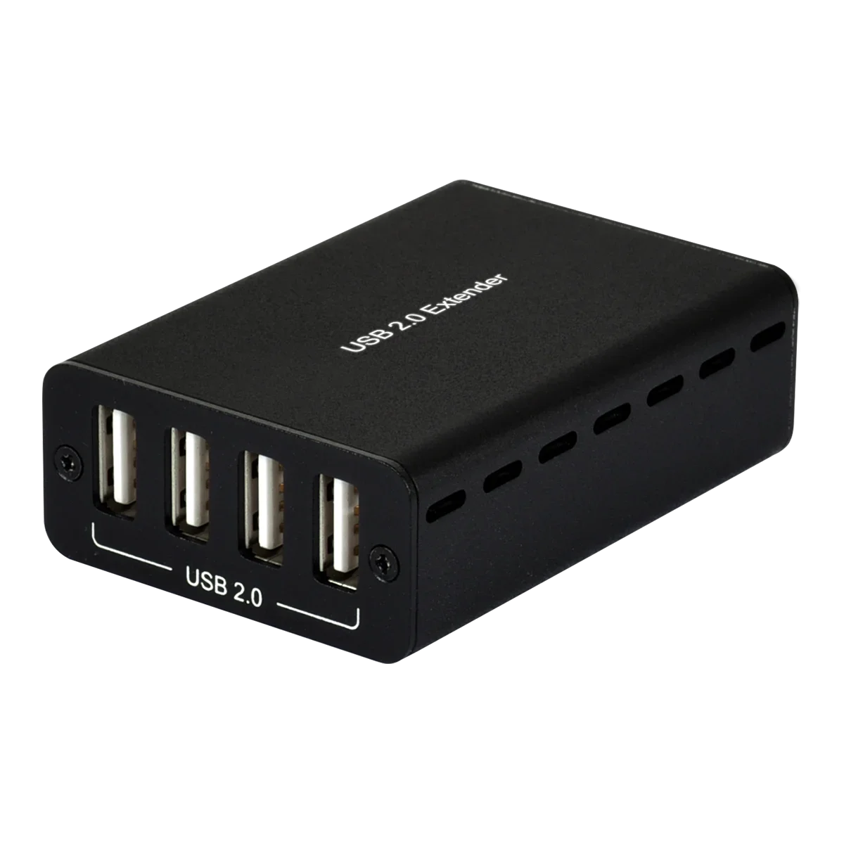Convenient point-to-point USB 2.0 extension with 4 port hub, 1 host port on the transmitter and 4 device ports on the receiver, Supports standard USB 2.0 devices, such as a mouse and keyboard, as well as those requiring isochronous transfers such as webcams and portable storage, Supplies up to 2A of power to the 4 USB ports (500mA per port), Low RF emission and robust noise immunity, Simple plug-and-play operation, no drivers required