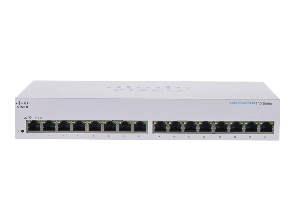 Cisco Business 110 Series 110-16T - Switch - unmanaged - 16 x 10/100/1000 - an Rack montierbar, Desktop, wandmontierbar
