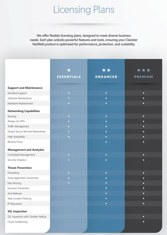 Clavister NetWall 140 NGFW Essentials Services, Monthly