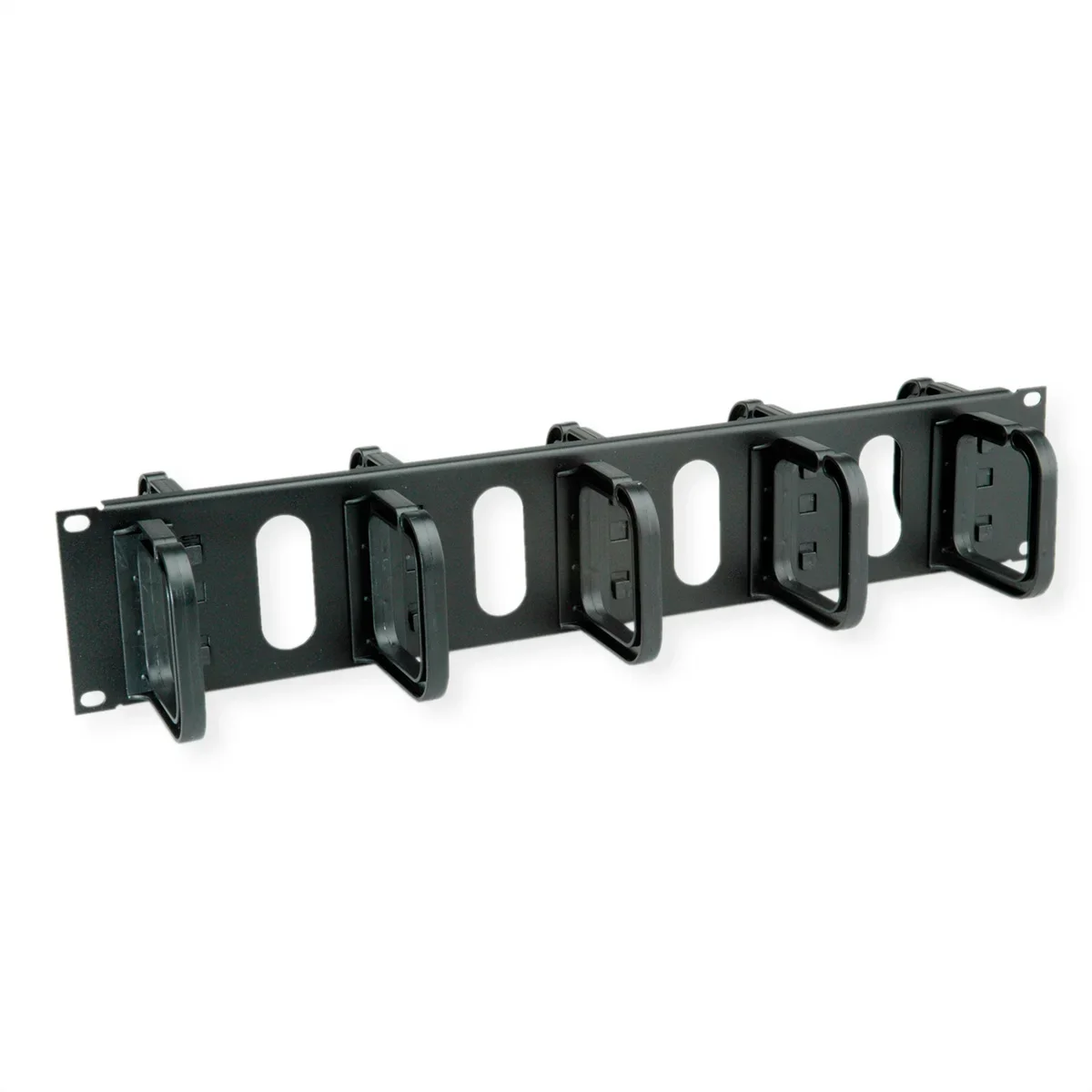 - 19"-Kabelführung 2 HE mit 2 x 5 (front- u. rückseitig) Kabelführungsbügeln aus Kunststoff