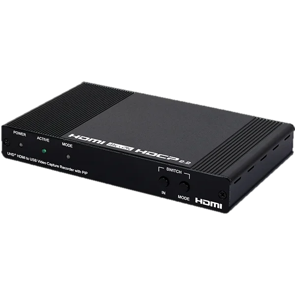 2 inputs(input 1 resolution up to 4K@60, input 2 up to 1080p@60), 1 bypass output (Follow source up to 4K@60) , USB3.0 (Type-B to Type-A) connected to PC for data transmission. , 3.5mm phone jack as Input of speaker. , Mode select button is designed for changing the layout of video sources, which allow user to define on tool. , Audio auto switch for priorities audio insertion or default priority. , Audio Mixer for provide flexible audio feature for mixing analog mic in with HDMI input audio. , PC software available for detail control and setting.